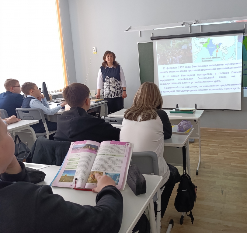 Главный библиограф рассказала школьникам о возникновении праздника. Еще в середине прошлого века бенгальская молодежь мужественно встала на защиту родного языка против вооруженной полиции. Результатом стало признание бенгали государственным языком. В память об этих событиях на конференции ЮНЕСКО в 1999 году был официально объявлен Международный день родного языка. В мировой календарь праздник включен в 2000 году. ООН призвала государства способствовать сбережению языков народов Земли с целью обеспечения сохранности языковых и культурных особенностей, присущих малым народностям.