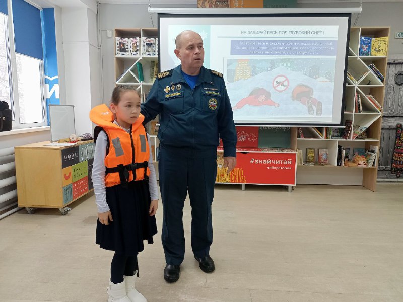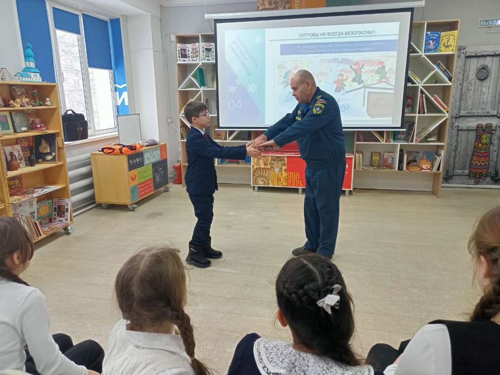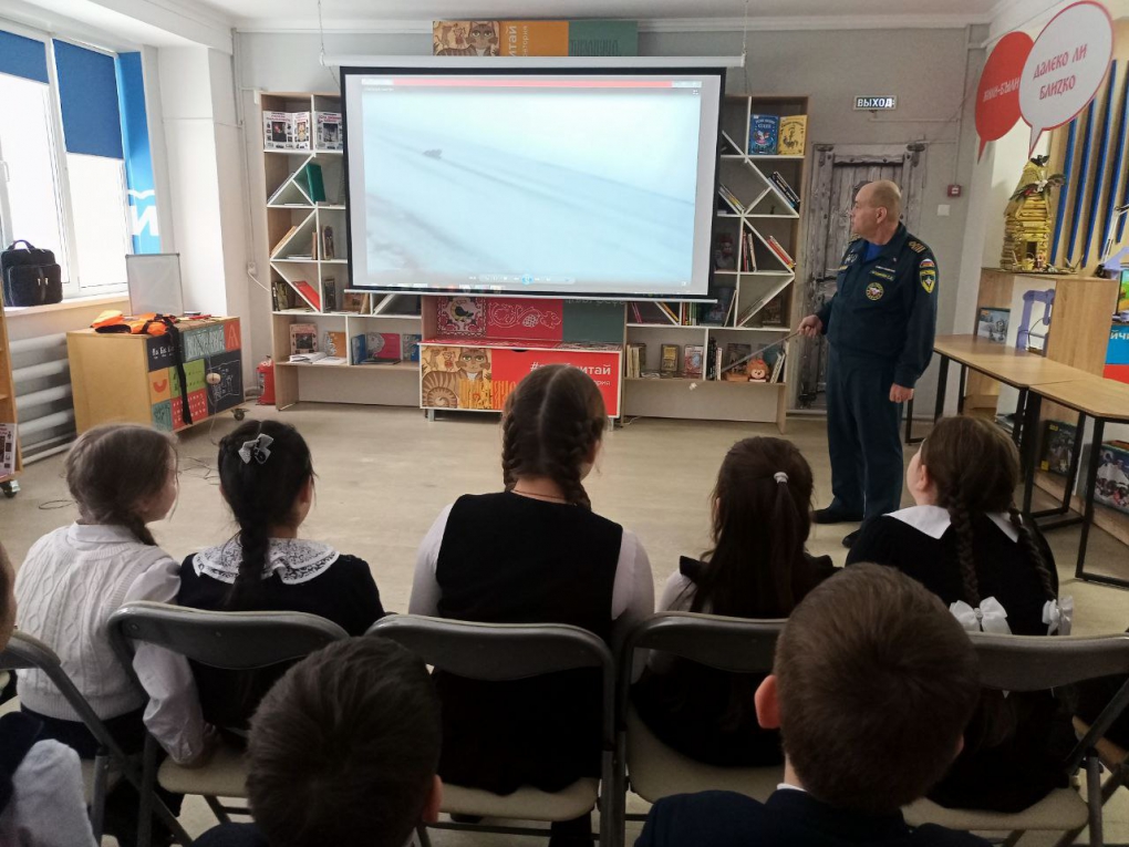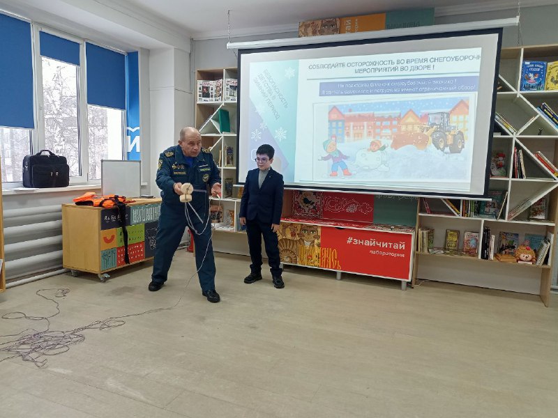 Особое внимание гость уделил возрастным ограничениям: он напомнил, что детям запрещено находиться возле водных объектов без сопровождения взрослых, и подробно объяснил, какие риски связаны с нарушением этого правила. Озвучил основные правила безопасного поведения на льду: использовать только оборудованные ледовые переправы либо проложенные тропы, если специальных маршрутов нет, заранее наметить путь и проверить прочность льда с помощью палки (категорически запрещено проверять лед ударами ноги), во время движения внимательно осматривать поверхность льда, обходить опасные участки и места, покрытые толстым слоем снега, учитывать, что безопасным для пешехода считается лед с зеленоватым оттенком и толщиной не менее 10 см. В завершение теоретической части продемонстрировал школьникам спасательный жилет и конец Александрова. «Зимой на ледяную поверхность водоемов устремляются дети, чтобы покататься на коньках, лыжах и санках или поиграть в хоккей, зачастую не зная элементарных правил безопасного поведения на водных объектах. Именно поэтому сотрудники Центра ГИМС Чувашии в это время года регулярно проводят профилактические мероприятия в библиотеках, школах и детских садах, где рассказывают о правилах поведения», – отметил спикер. Подводя итоги, передал школьникам информационные памятки и тематические закладки.