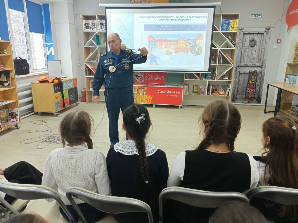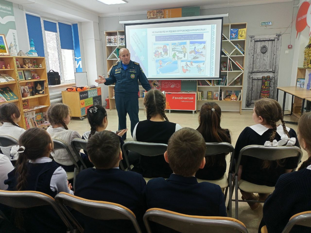 В рамках Всероссийской акции «Безопасность детства» в Чувашской республиканской детско-юношеской библиотеке состоялась профилактическая встреча с начальником отдела контрольно-надзорной деятельности Центра ГИМС Главного управления МЧС России по Чувашской Республике – Чувашии Сергеем Аршиновым. Участниками стали обучающиеся средней школы №17 г. Чебоксары.