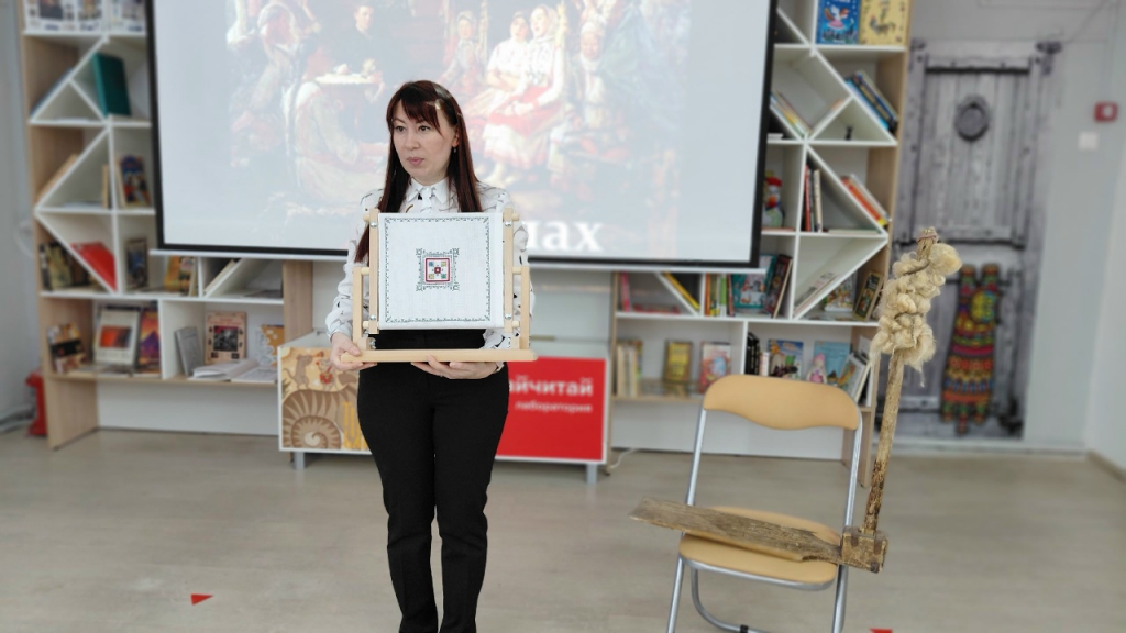 Заведующий сектором культурных программ отдела обслуживания Наталья Степанова провела для школьников увлекательное знакомство с самобытным чувашским праздником Улах. Подробно рассказала о времени проведения традиционных посиделок, об их роли в жизни молодежи прошлых поколений и о том, как организовывались встречи.