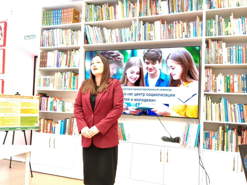 В рамках семинара заведующий детской библиотекой Централизованной библиотечной системы Комсомольского муниципального округа Елена Прокопьева выступила с докладом «Новые горизонты детского чтения: как работать с детьми и молодежью?» В своем выступлении спикер подробно осветила современные подходы к привлечению подрастающего поколения к чтению, представила эффективные методики работы и поделилась практическим опытом организации библиотечных мероприятий для детей и молодежи.