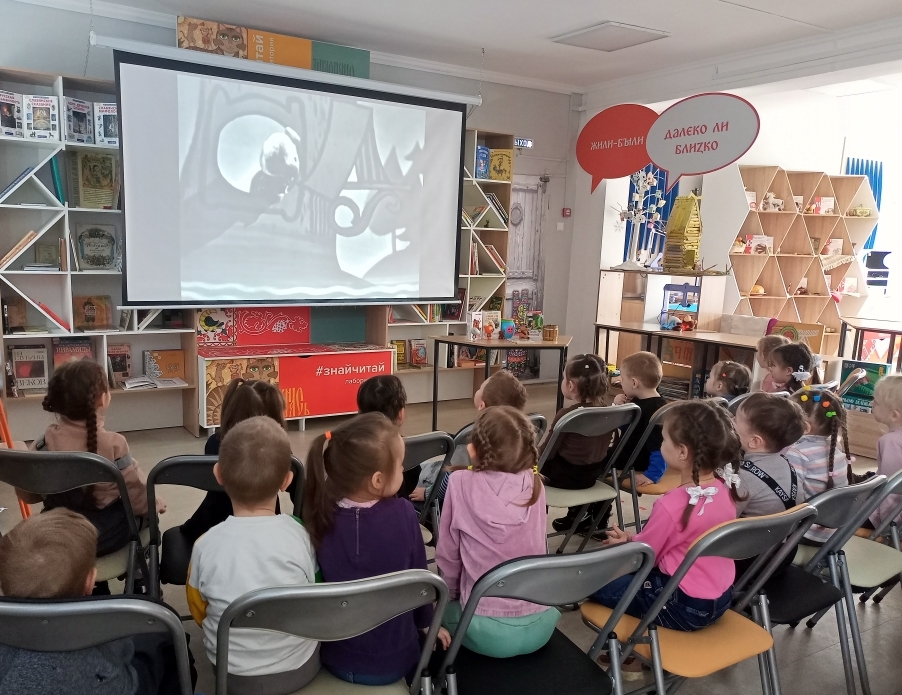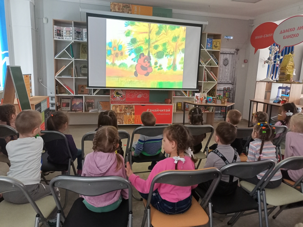 Вниманию маленьких зрителей был представлен легендарный кукольный спектакль 1968 года, снятый по сценарию Бориса Заходера и Николая Куракина. Эта киноработа сумела не просто перенести на экран любимые образы, но и вдохнуть в них особую душевность, благодаря чему уже несколько поколений зрителей с теплотой вспоминают обаятельного медвежонка и его верных друзей. По ходу показа специалист библиотеки делился интересными деталями, обратили внимание малышей на актерскую игру, особенности постановки и тонкости передачи характеров персонажей – так дети учились замечать театральные приемы.