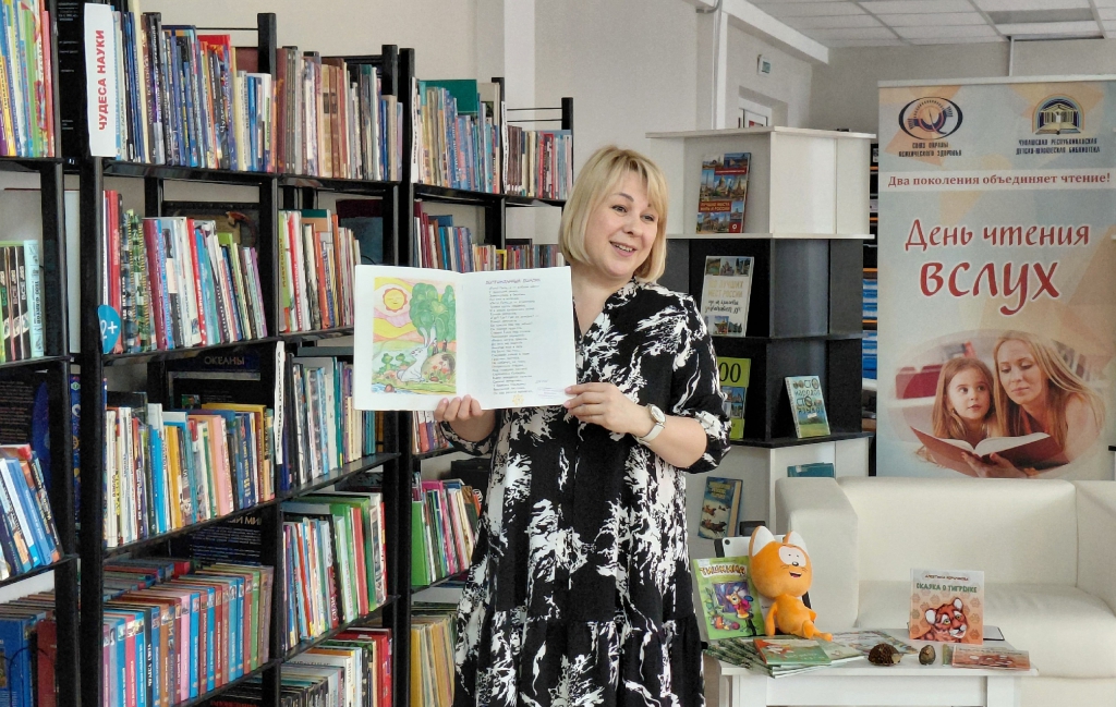 Гостей поприветствовала Эвелина Малеева, заведующий отделом краеведческой и национальной литературы. Она представила писательницу и напомнила, что Неделя детской книги – это время, когда библиотеки открывают свои двери для самых разных мероприятий, в том числе для встреч с детскими авторами.