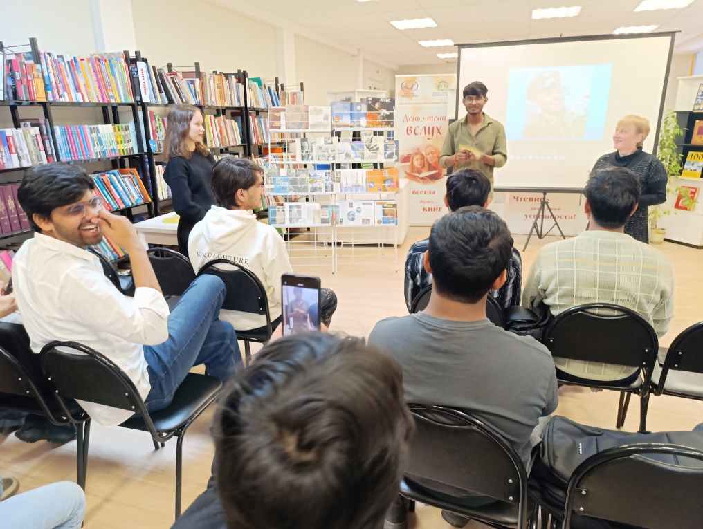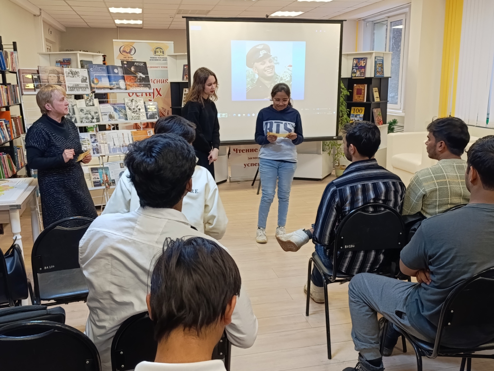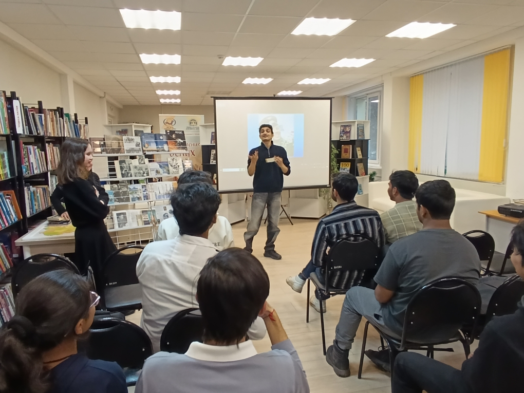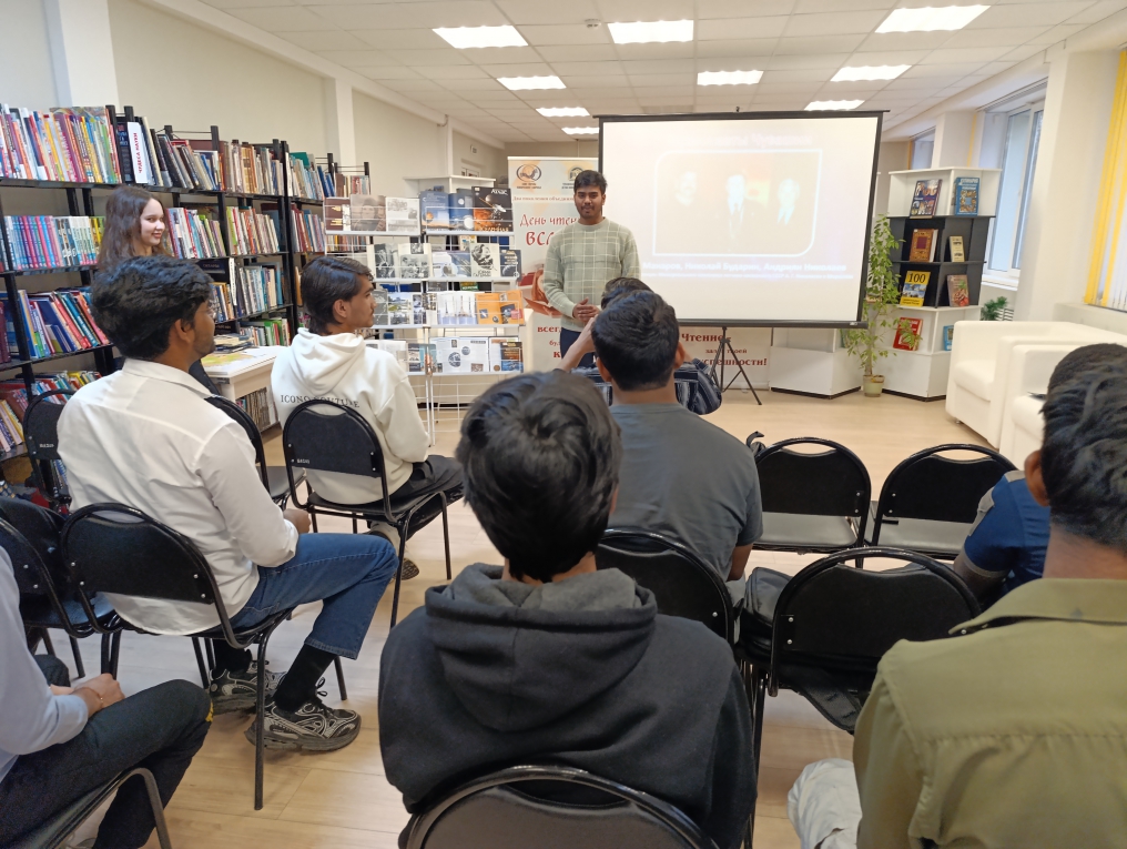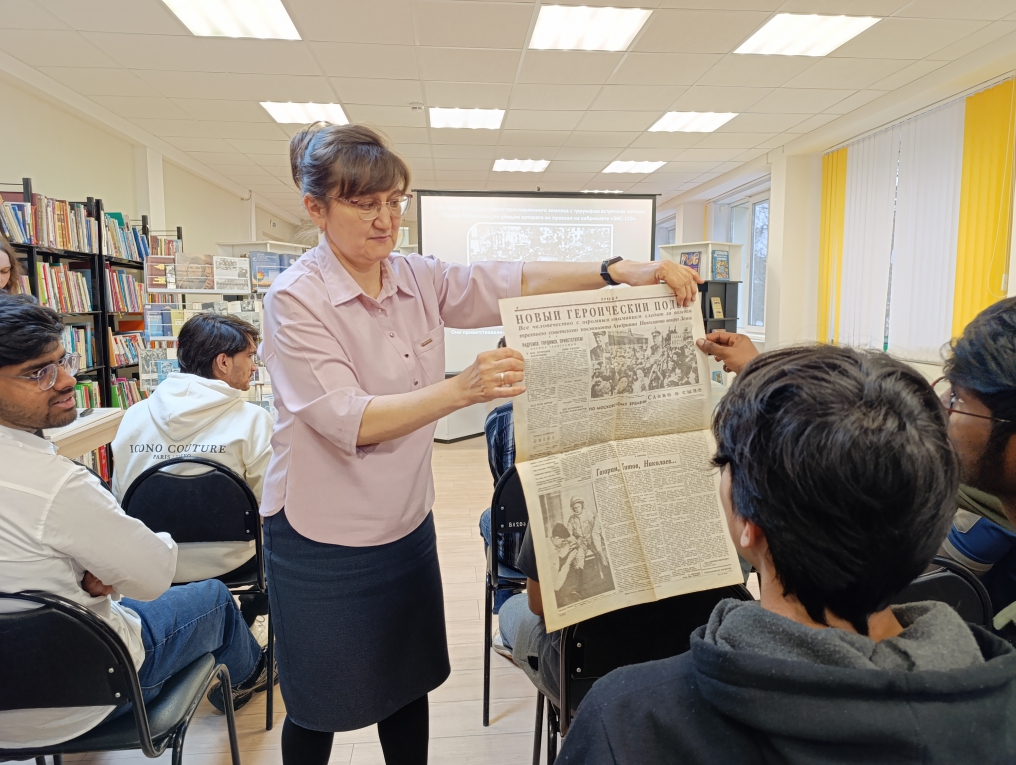 В читальном зале состоялся репортаж «Космическая одиссея: путешествие по страницам». Специалист отдела обслуживания Ирина Иванова рассказала студентам о том, с чего начался путь к звездам, рассказала о семье, детстве и юности легендарного космонавта Юрия Гагарина, его учебе в авиационном училище и отряде по подготовке космонавтов.
