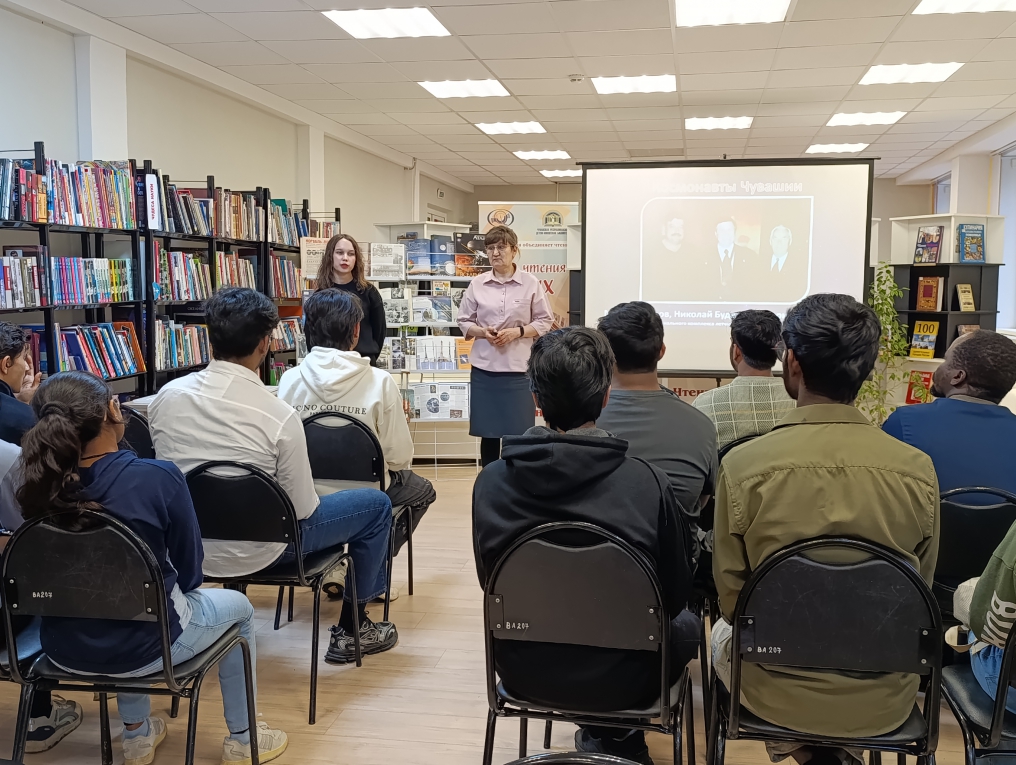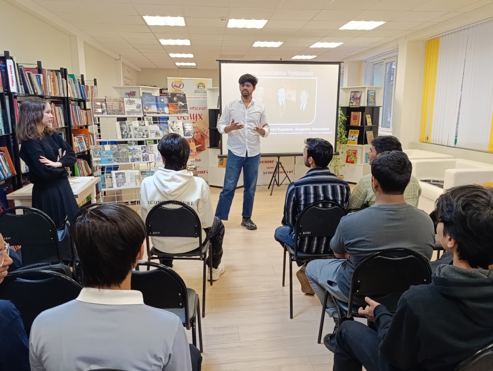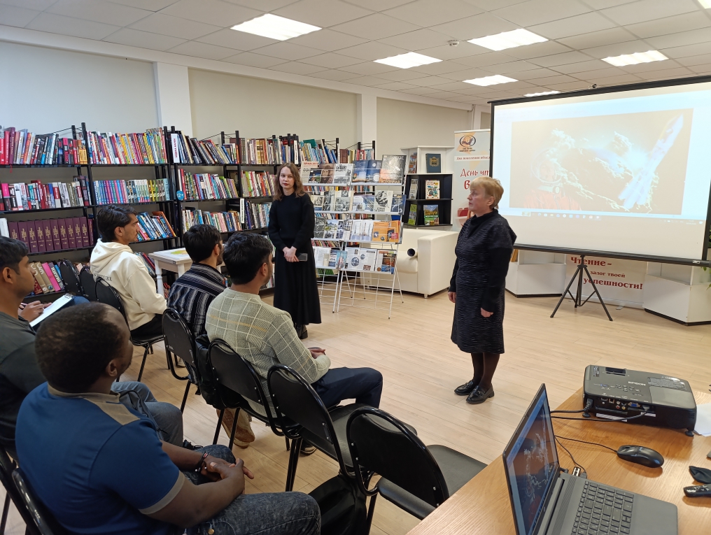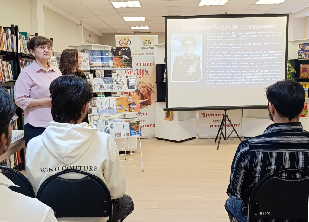 В этом году в нашей стране отмечают 65 лет со дня первого полета человека в космос. Этому знаменательному событию в Чувашской республиканской детско-юношеской библиотеке были посвящены познавательные занятия для иностранных студентов, обучающихся в Чувашском государственном университете им. И.Н. Ульянова.