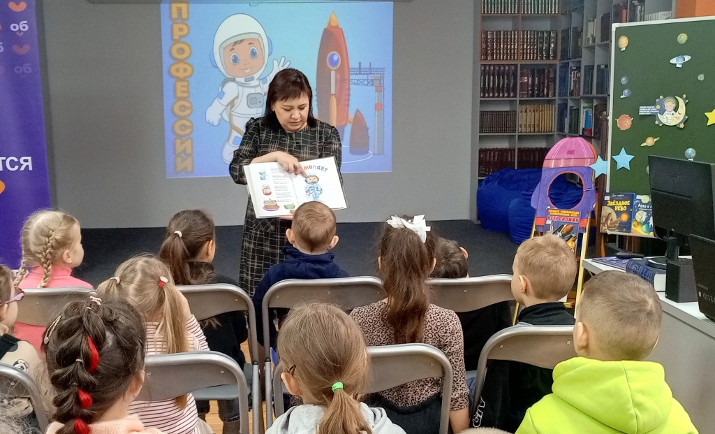 Путешествие началось со знакомства с историей Дня космонавтики и профессиями космической отросли. С помощью книги Галины Шалаевой «Кем мне стать?» ребята узнали: кто такой космонавт и чем он занимается на борту корабля; почему важно знать сложную аппаратуру и уметь ее чинить; чем занимается астроном и как с помощью специальных приборов изучать звезды, расположенными в миллионах световых лет от Земли.