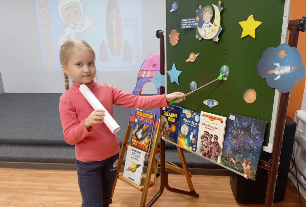 Завершилось приключение знакомством с библиотечной подборкой книг о космосе: «Звездное небо», «Лева и Лиза путешествуют по Вселенной» и другими изданиями. Юные путешественники с интересом изучали иллюстрации и открывали для себя новые тайны Вселенной.