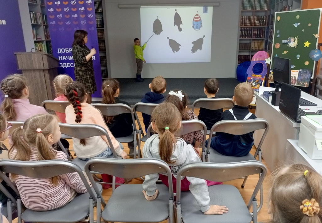Затем юные исследователи попали в «Космосоображалку» – здесь их ждали захватывающие задания: вспомнить, когда отмечают День космонавтики, описать костюм космонавта, отыскать тень ракеты и решить и другие космические загадки.