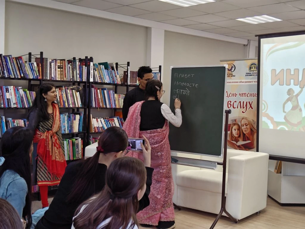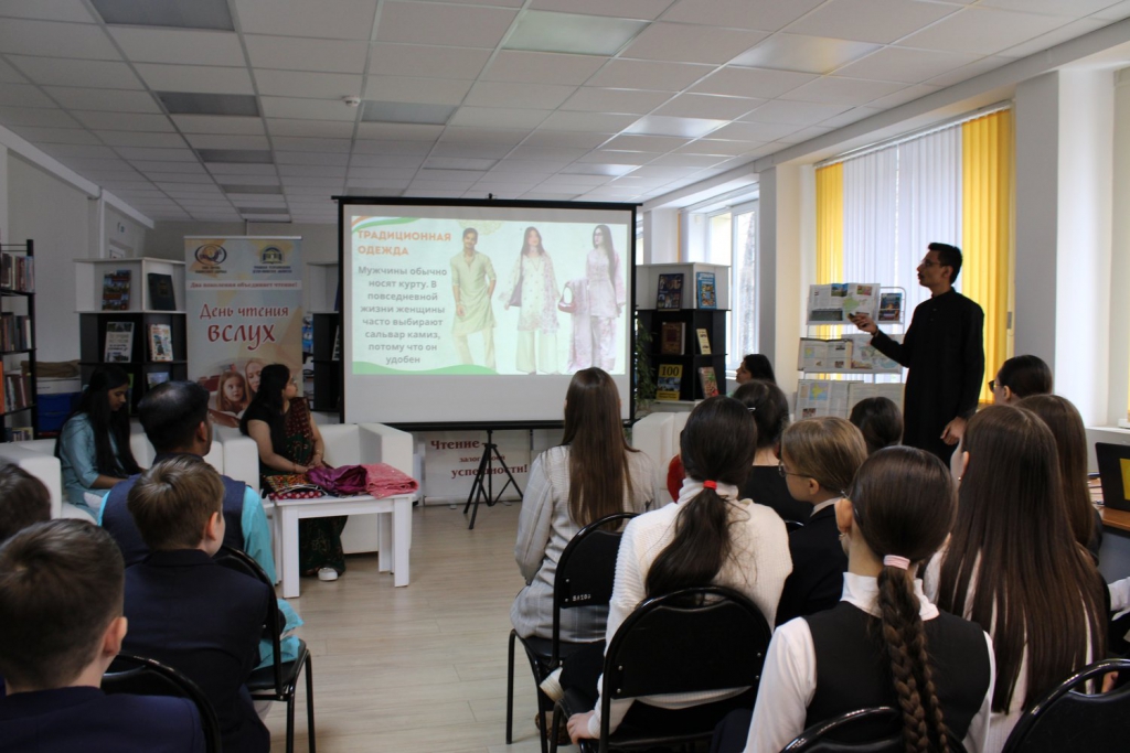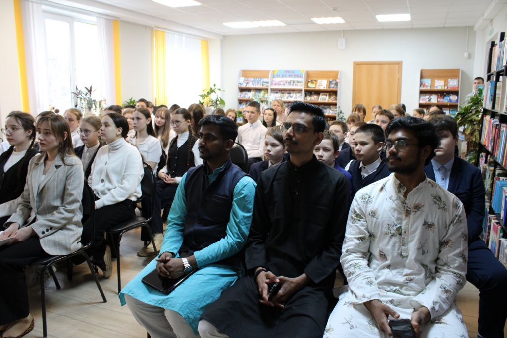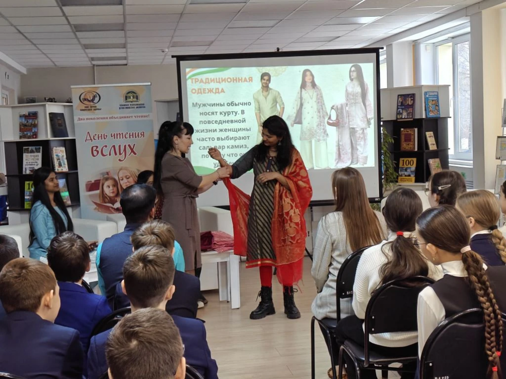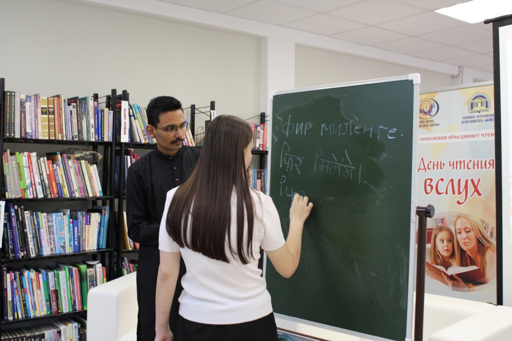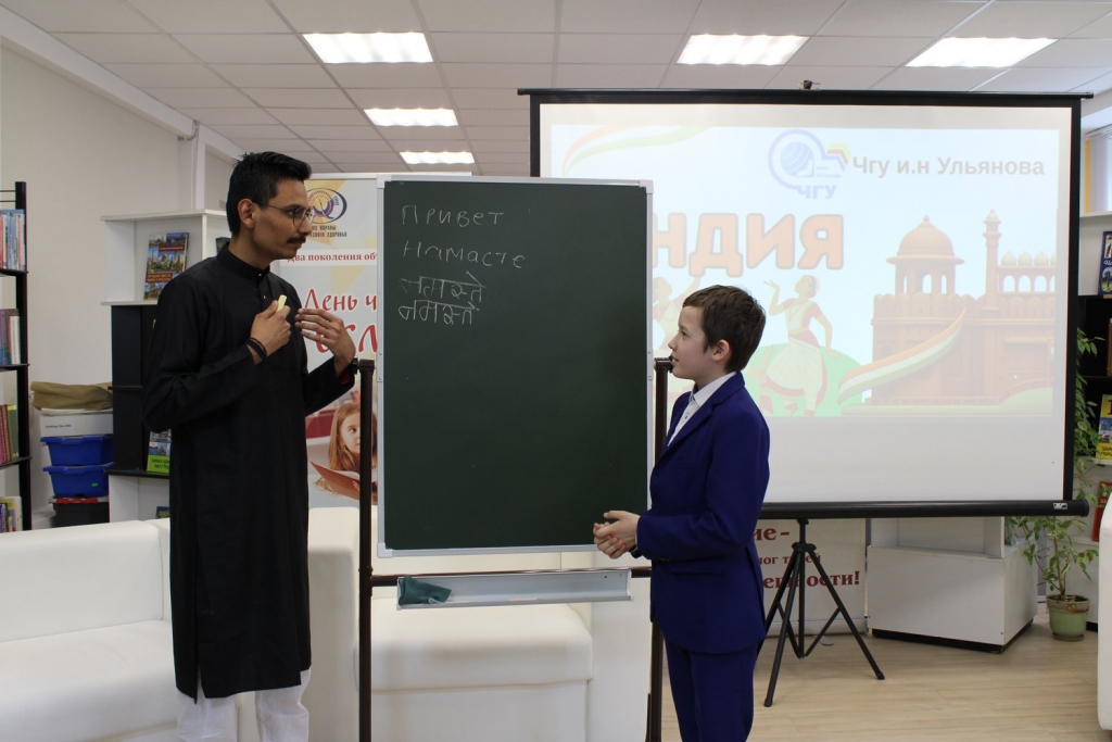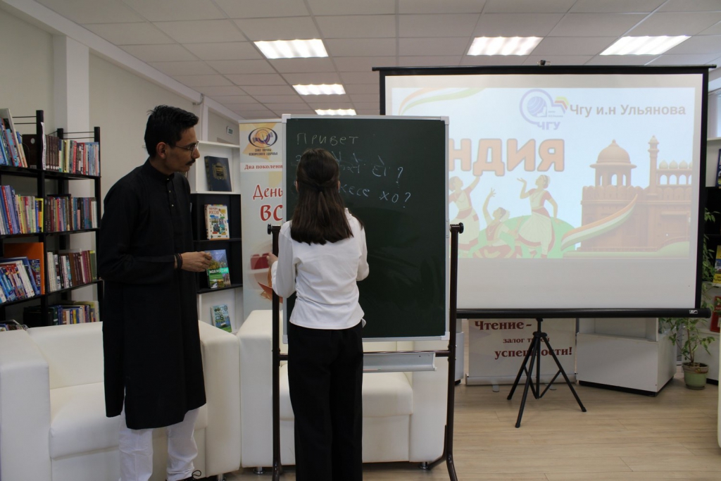 Представляя гостей, заведующий отделом краеведческой и национальной литературы Эвелина Малеева рассказала школьникам, что Чувашия – многонациональная республика, в которой проживают представители 128 национальностей, 8 этнических групп и 14 религиозных конфессий. Несмотря на такое разнообразие, все живут в дружбе, мире и согласии. Это подчеркнули и студенты-индийцы. Они отметили, что жители Чувашии и России доброжелательны и относятся к их культуре с уважением.