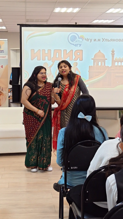 Прочувствовать дух этой азиатской страны помог национальный традиционный индийский танец в исполнении гостей вечера – Лабады Санчита Даттатрай и Патил Суниты. Они также исполнили любимые песни на родном языке – хинди. Участники узнали о богатом разнообразии индийского танца.