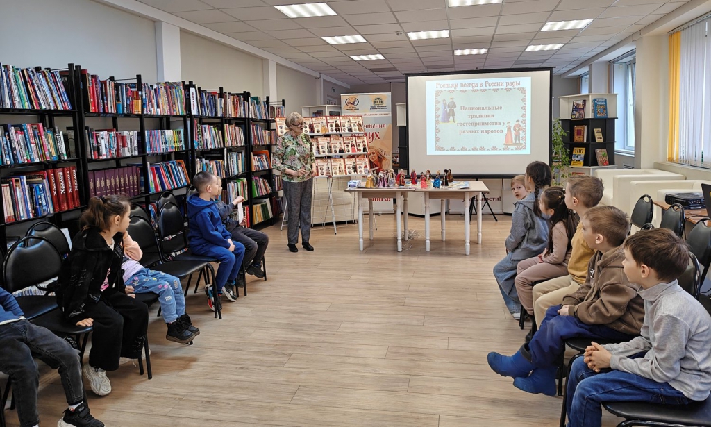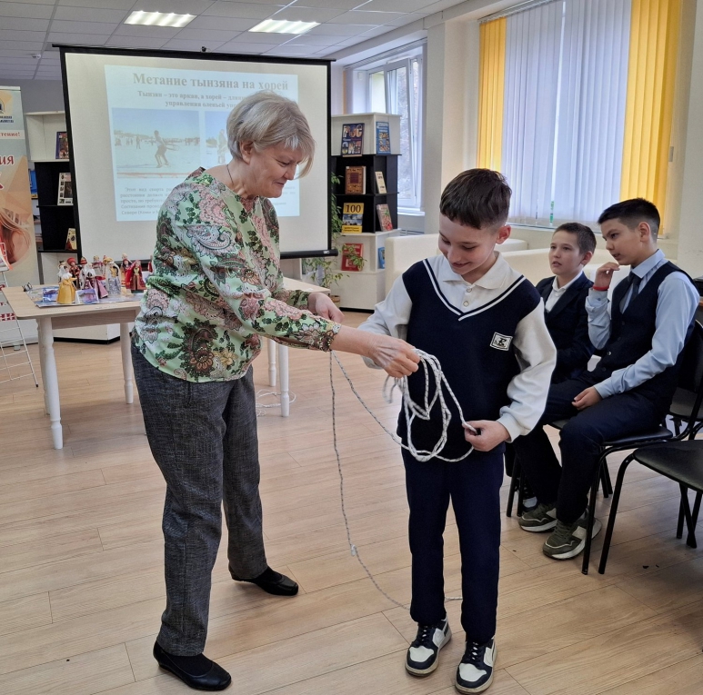 Читальный зал подготовил для посетителей этнографическую мозаику «Портрет народов России», состоящую из познавательных фактов о национальных традициях гостеприимства, о том, как живут этносы, какими традиционными промыслами занимаются и соревнуются между собой в силе и ловкости. Изюминкой праздника стали самобытные игры: «Поймать оленя», «Бодания оленей» и «Смелый джигит».