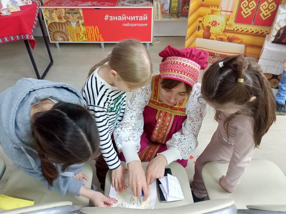 В Чувашской республиканской детско-юношеской библиотеке в рамках Всероссийской акции «Библионочь-2026» состоялись различные активности: этнографическая мозаика «Портрет народов России», литературное рандеву «Баба Яга + Кощей Бессмертный», квест-игра «Ночной экспресс: маршрут построен», мастер-класс «Искусство красивого штриха», технотур «Сказочные корни научного прогресса», интеллектуальная этноигра «Традиции народов России». Каждое из мероприятий объединяла тема «Единство народов – сила России!».