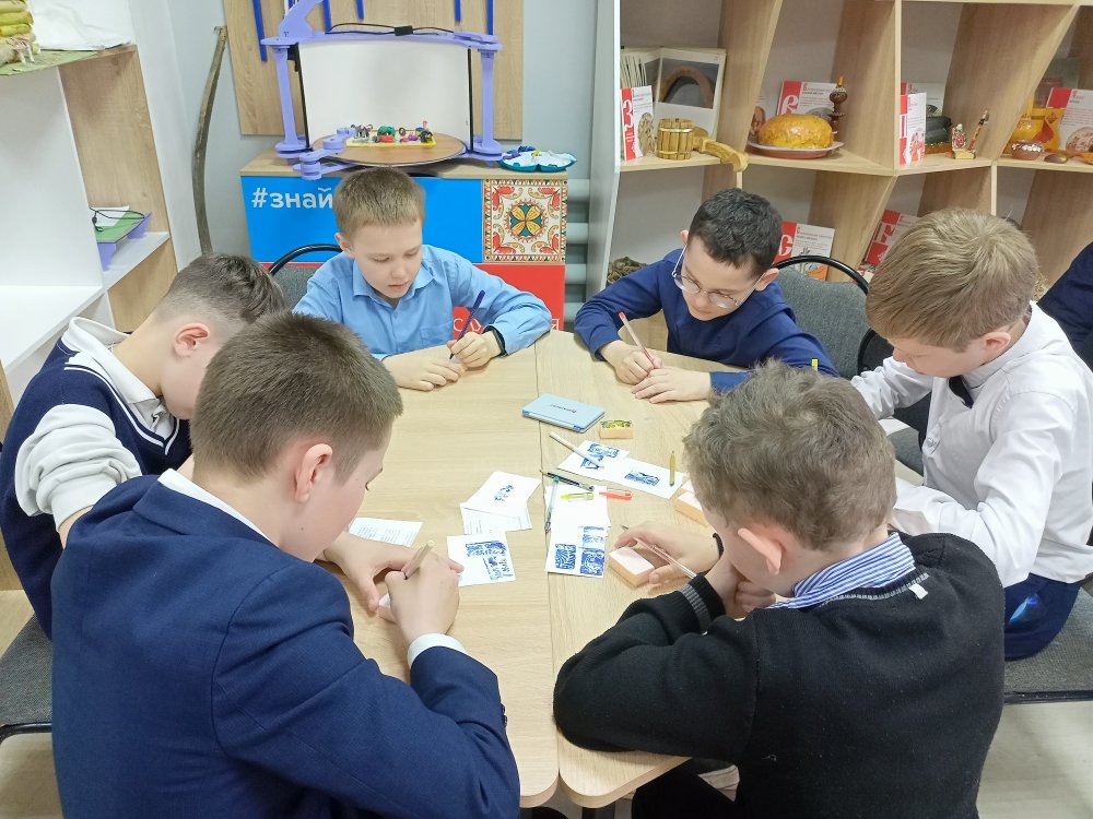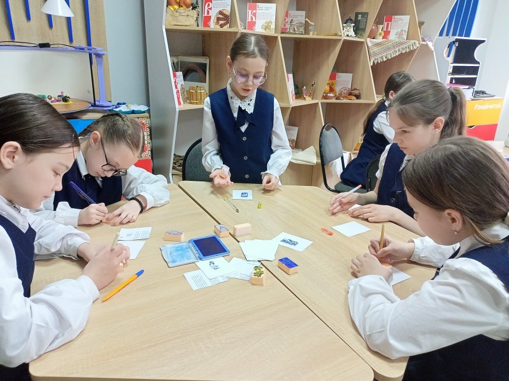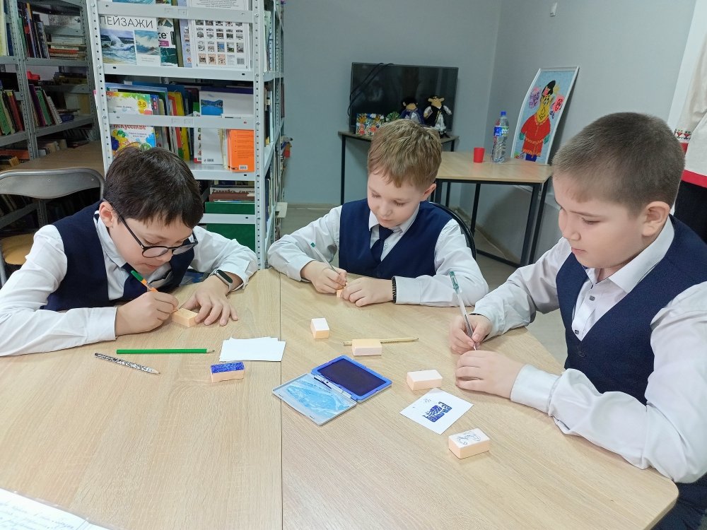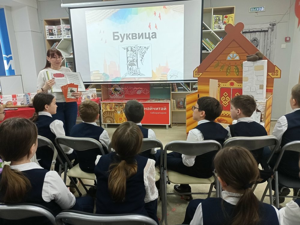 Мастер-класс «Искусство красивого штриха» ознакомил ребят из чебоксарской школы №41 с разновидностями буквиц – украшенных заглавных букв, которые в старину открывали главы и абзацы в рукописных книгах. Библиотечный специалист рассказал, как менялись стили буквиц в разные эпохи и в разных культурах, какие символы и орнаменты использовались для их оформления и какую роль они играли в визуальном восприятии текста. Школьники увидели иллюстрации старинных книг, где символы выступали не просто элементом текста, а полноценным произведением искусства. Это помогло им оценить мастерство древних каллиграфов и иллюстраторов и вдохновиться для собственной творческой работы. Практическая часть занятия позволила детям создать собственную уникальную буквицу, соединив традиции прошлого с современными материалами и техниками. Для этого они использовали фоамиран, штемпельную краску, цветные карандаши, гелевые ручки. Каждый ушел с готовой работой – авторской буквицей.