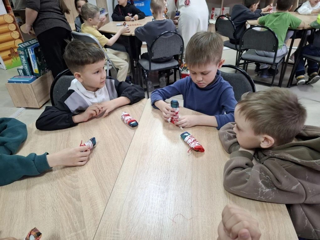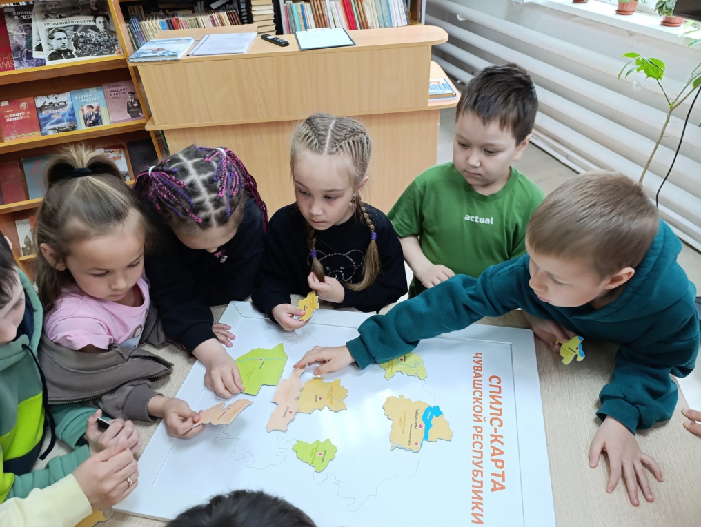 Началась акция с игры по станциям «Ночной экспресс: маршрут построен». Ее участниками стали любознательные воспитанники подготовительной группы детского сада № 203 г. Чебоксары. Путешествие по шести тематическим островам превратилось в настоящий праздник знаний. Ребята смотрели мультфильм о Чувашии, на скорость собирали сплит-карту республики и удивляли библиотекарей эрудицией, безошибочно соотнося традиционные костюмы с народами, которые их носили. Не менее увлекательно прошло знакомство с домовыми постройками разных уголков страны и обсуждение любимых народных сказок. Настоящим театральным испытанием стала кукольная постановка сказки «Колобок», где актерами выступили сами дети, а помогал им библиотечный специалист. Задорная игра юных кукловодов вызвала море улыбок и заслуженные аплодисменты зрителей. В игре-поиск «Тайны старинного замка» детям было предложено расположить карточки с названиями народностей в правильной последовательности. После выполнения задания они смогли прочесть описание соответствующих национальностей и стихотворение. На следующем этапе юные исследователи проявили внимательность: им предстояло отыскать в книжных стеллажах энциклопедию «Народы России». За успехи на каждом этапе юные путешественники получали отметки в маршрутные карты. Завершился квест творческим мастер-классом по созданию традиционной куклы-закрутки. В маленьких ладошках оживали лоскутки ткани, превращаясь в хранительниц добрых традиций. Прощаясь, маленькие гости дружно пообещали: «Справились отлично, придем еще!».