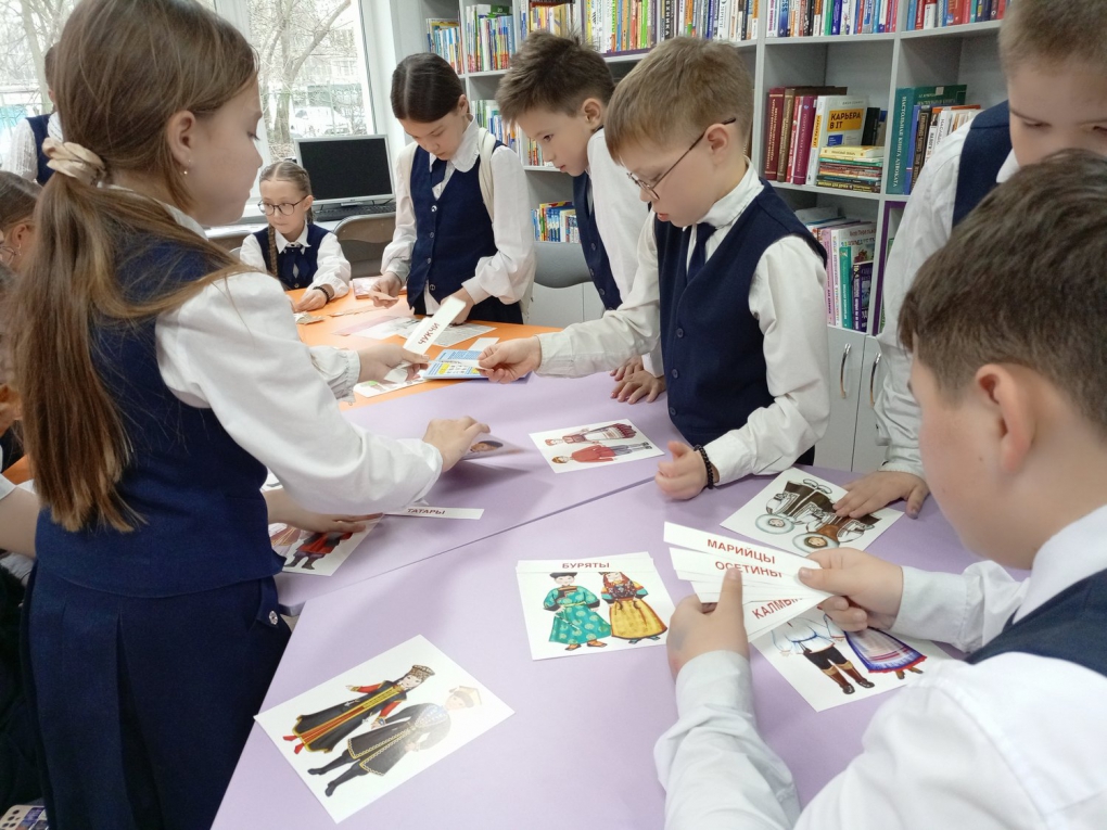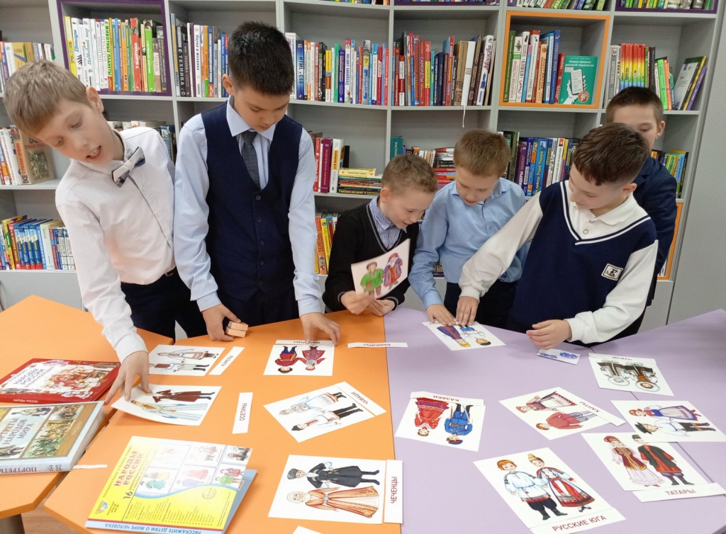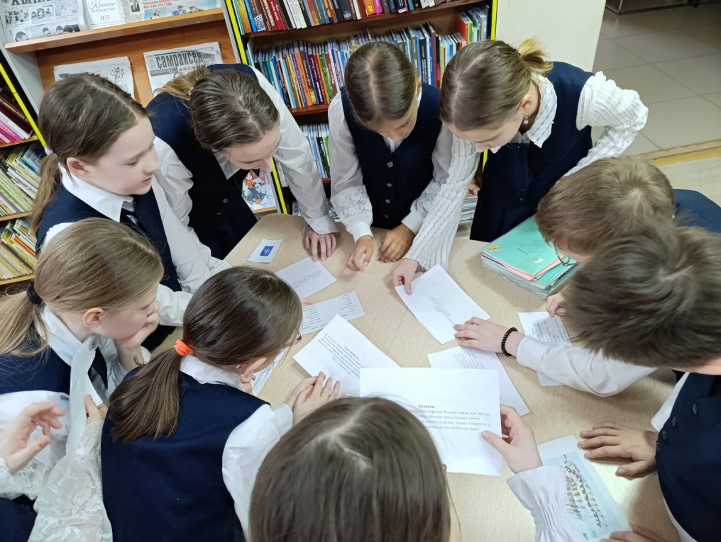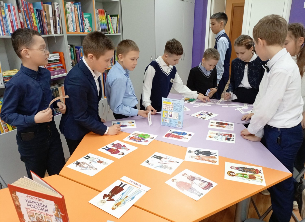 В отделе краеведческой и национальной литературы состоялось интеллектуальная этноигра «Традиции народов России», в ходе которой школьники поделились на три команды, каждая из которых получила увлекательное задание по изучению культурных особенностей народов России. Первая команда исследовала традиционные праздники, определяя, каким этносам соответствуют такие события, как Акатуй, Сурхарбан или Гербер. Вторая группа сосредоточилась на жилищах, анализируя характерные строения – от якутского балагана до кавказской сакли. Третья команда погрузилась в кулинарные традиции, устанавливая связь между блюдами, такими как копальхен, шартан или ойогос, и их национальным происхождением. В процессе работы ребята активно обменивались знаниями, а также дополнительными материалами. Игроки не только успешно справились с заданиями, но и подготовили краткие выступления, наглядно демонстрируя многообразие культурного наследия.
