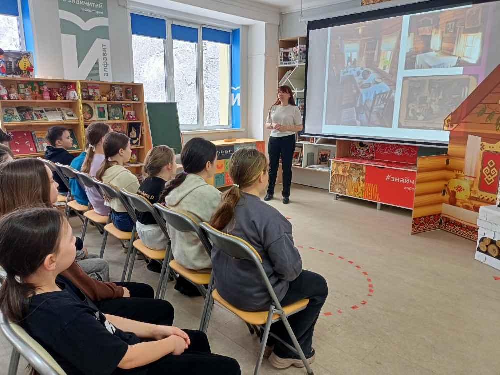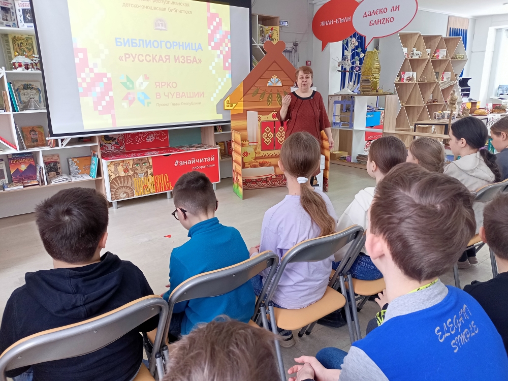 В рамках проекта Главы Республики «Ярко в Чувашии» в Лаборатории детского и подросткового чтения #ЗнайЧитай Чувашской республиканской детско-юношеской библиотеки для обучающихся школы №20 г. Чебоксары «распахнула двери» библиогорница «Русская изба».