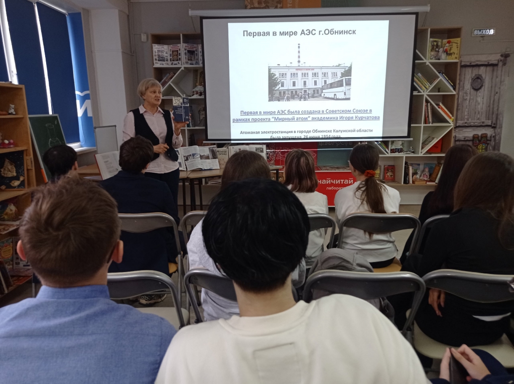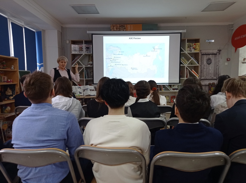 Библиотекарь ознакомил школьников с историей мирного атома, рассказал о первой в мире советской атомной электростанции, заработавшей в городе Обнинске в 1954 году, об использовании атомной энергии в медицине, отечественных передовых технологиях, используемых при строительстве новых АЭС по всей планете, а также о том, что развитие человечества невозможно без термоядерных технологий.