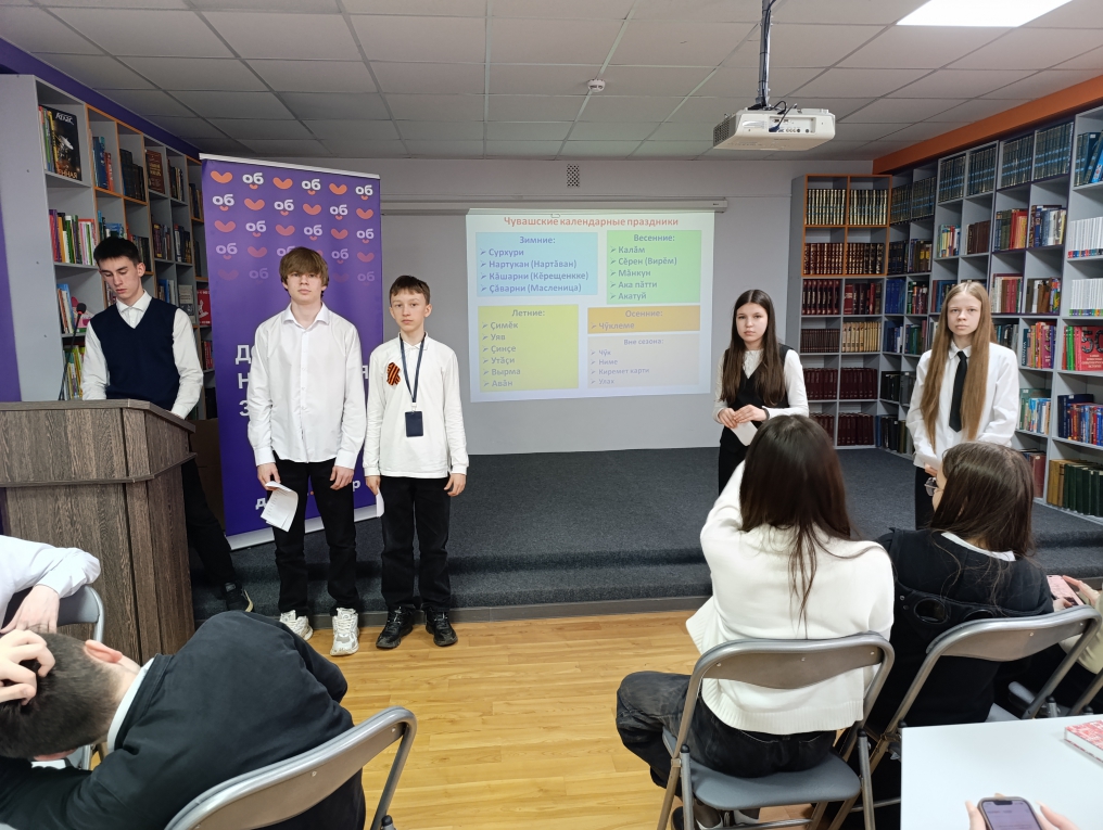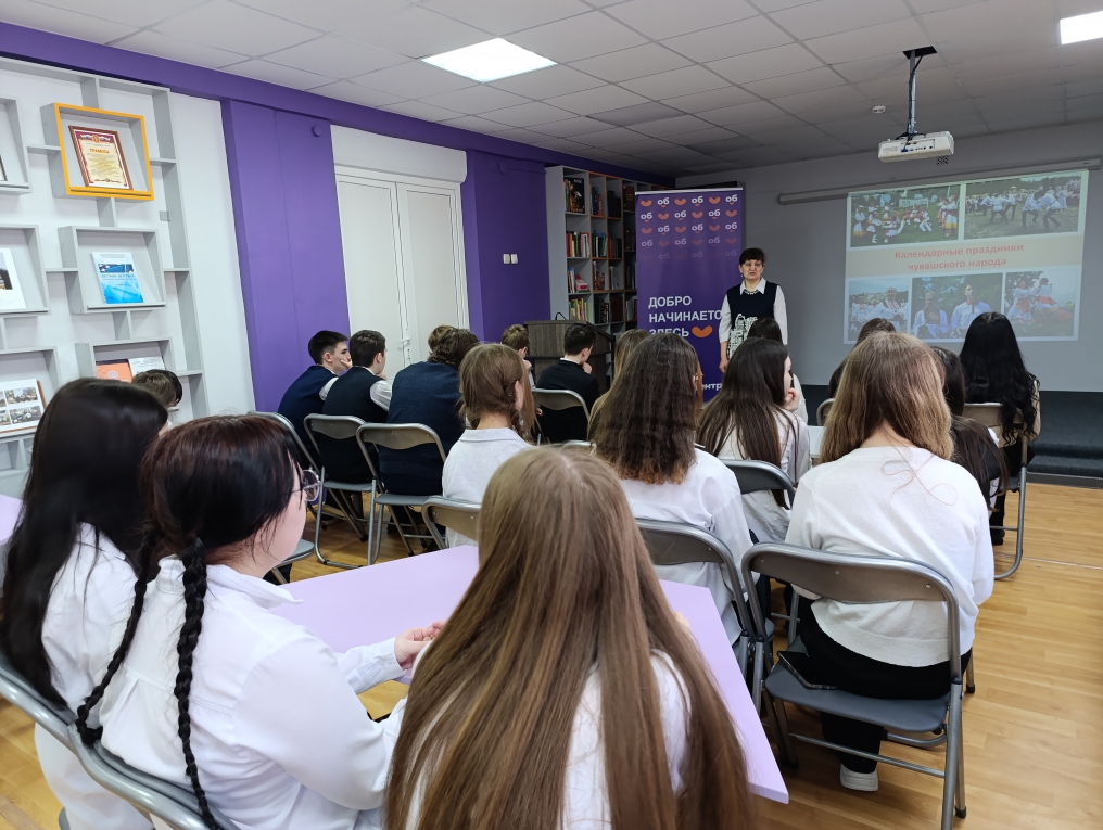 В отделе краеведческой и национальной литературы Чувашской республиканской детско-юношеской библиотеки состоялась краеведческая мозаика «Весенне-летние праздники чувашей». Участниками стали обучающиеся 8 класса средней общеобразовательной школы г. Чебоксары.