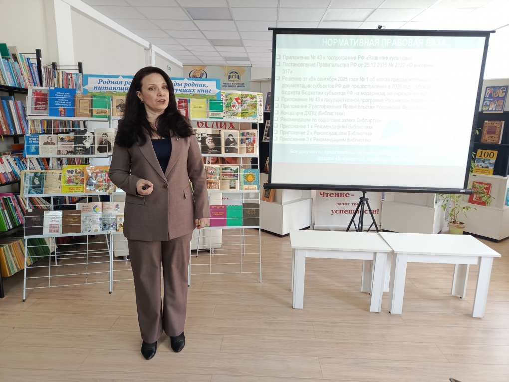 Торжественное открытие профессиональной встречи предварило приветственное слово директора Чувашской республиканской детско-юношеской библиотеки Татьяны Вашуркиной. В своем выступлении она обозначила ключевые аспекты взаимодействия с муниципальными библиотеками Чувашской Республики, особо акцентировав перспективы развития сети детских культурно-просветительских центров (ДКПЦ), открытие которых в регионе намечено на текущий год. Руководитель библиотеки подчеркнула высокую социальную значимость работы с детьми и подростками, назвав данное направление приоритетным. Оно предусматривает всестороннее развитие личности каждого ребенка, популяризацию традиционных российских духовно-нравственных ценностей, внедрение цифровых и здоровьесберегающих технологий, профилактику деструктивного поведения и иные важнейшие задачи.