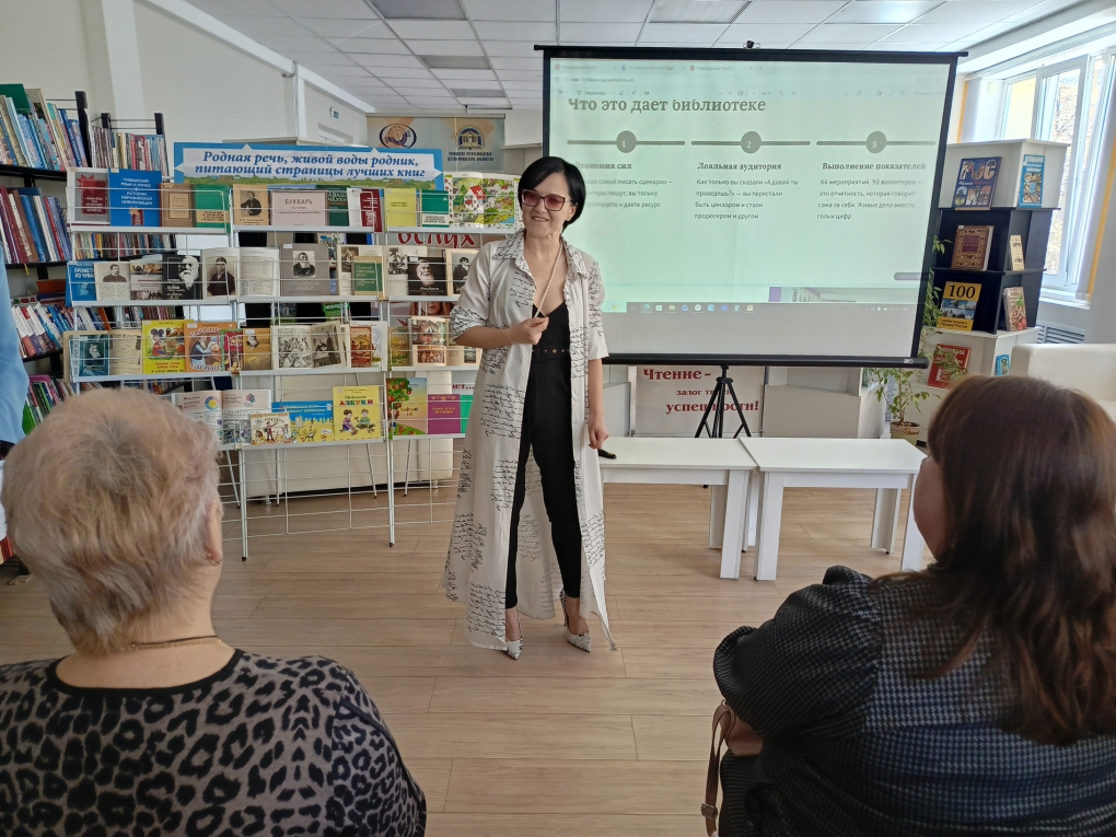 С докладом «Талантливая молодежь и волонтерство: роль библиотек в объединении усилий» выступила заведующий информационно-библиографическим отделом Наталия Петроградская. Она подчеркнула значение библиотек как платформ для вовлечения одаренной молодежи в добровольческую деятельность, создания условий для самореализации и поддержки социальных инициатив, а также раскрыла методику взаимодействия библиотек с молодежными волонтерскими объединениями.