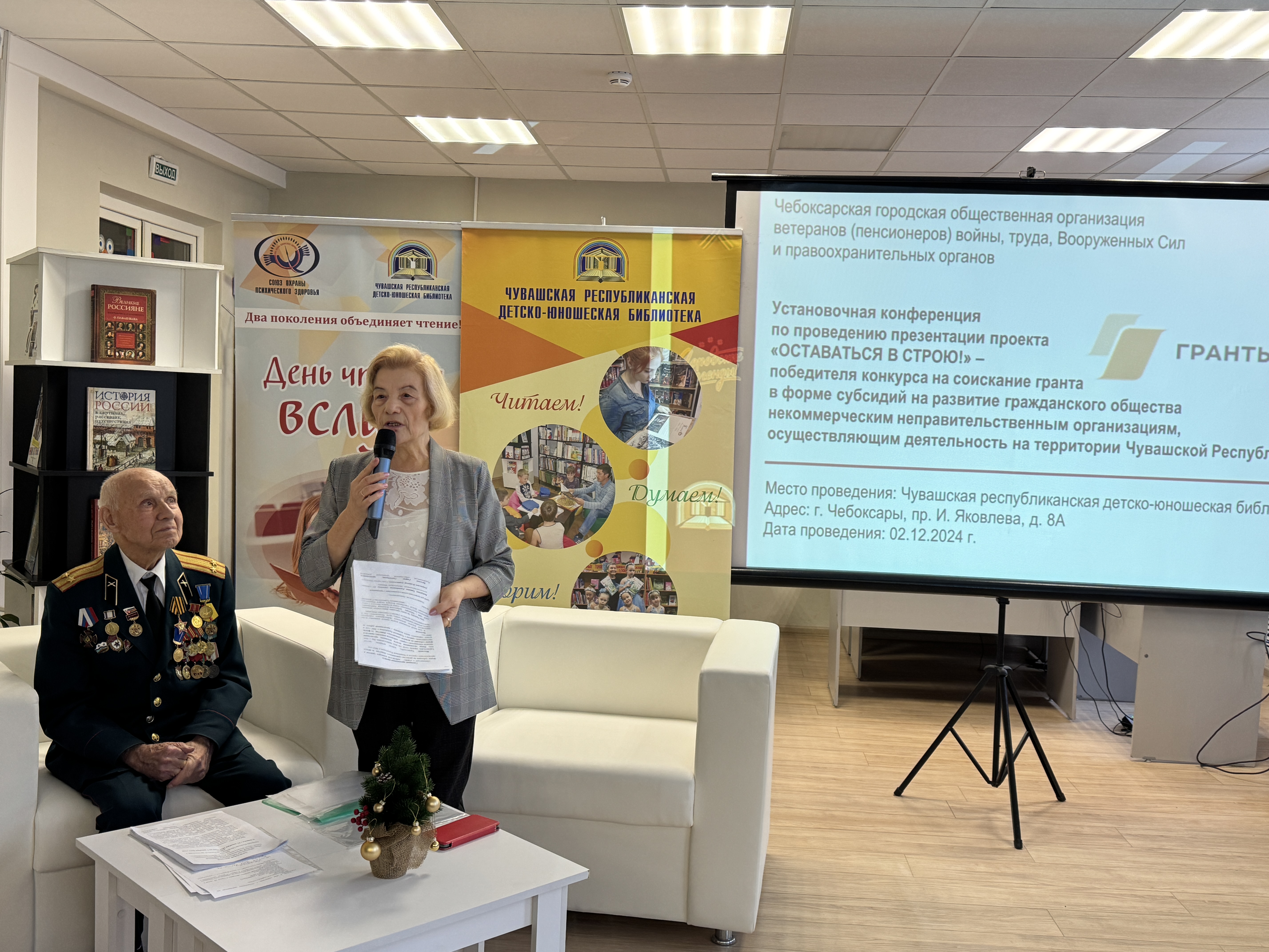 В Чувашской республиканской детско-юношеской библиотеке состоялась установочная конференция по проведению презентации проекта «Оставаться в строю!» Чебоксарской городской общественной организации ветеранов (пенсионеров) войны, труда, Вооруженных Сил и правоохранительных органов, ставшего победителем Конкурса на предоставление грантов на развитие…